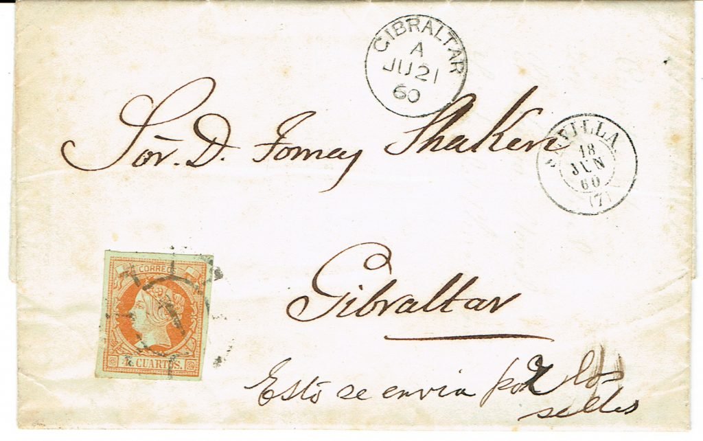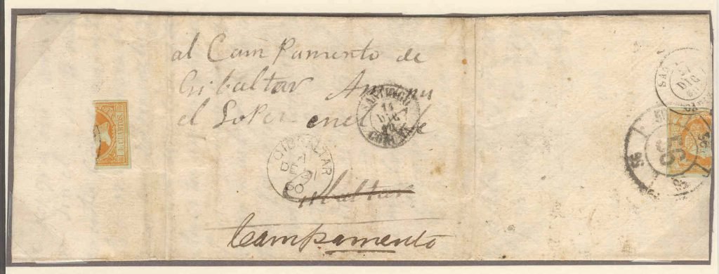 To Gib in error, to Campemento stamp on back, S&L sale lot 631 19 June 07,