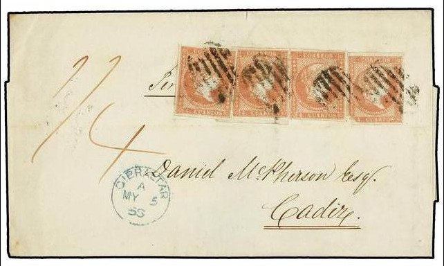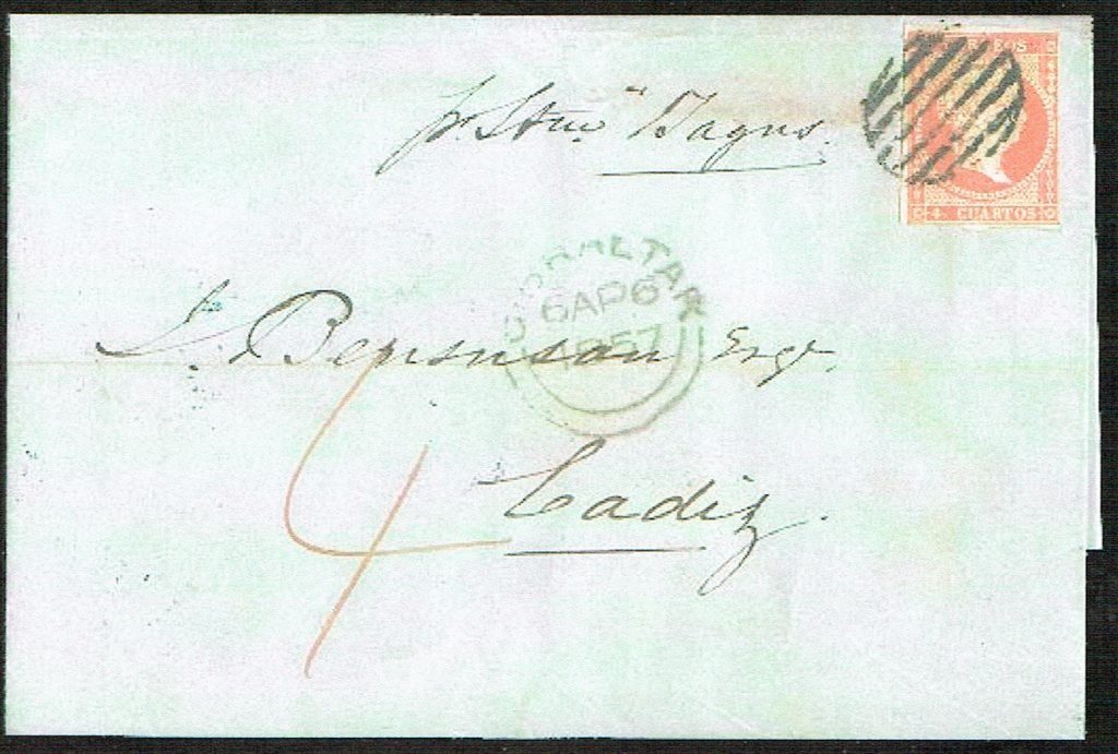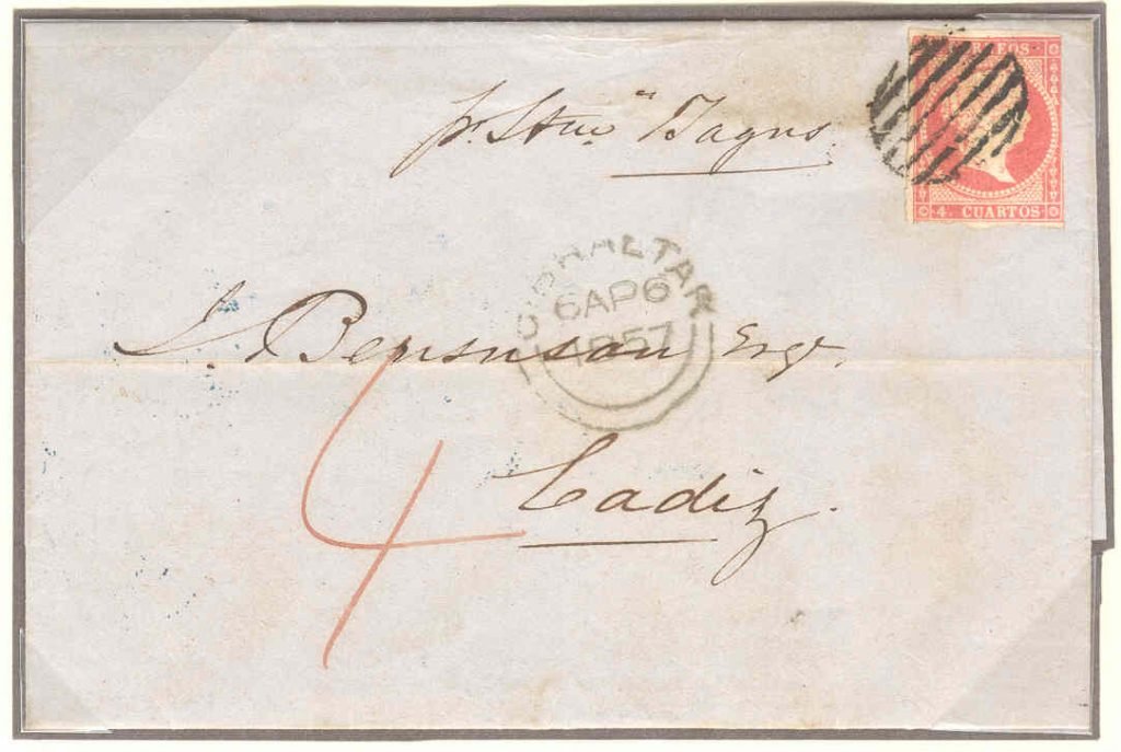 To Bensusan, Gibraltar postmark and 4 rate, per Tagus, Torres on line Auction 1134 lot 86, 15/9/2004