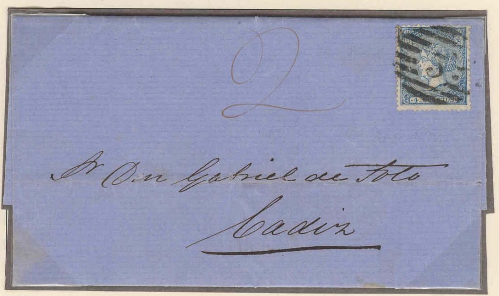 To Bensusan, por Vapor Paquette de Huelva, 2dms and cds, S&L 19 June lot 40