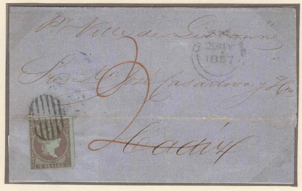 To Casanova et C, per Ville de Lisbonne, 2d manuscript sea letter rate Afinsa April 2002, lot 82