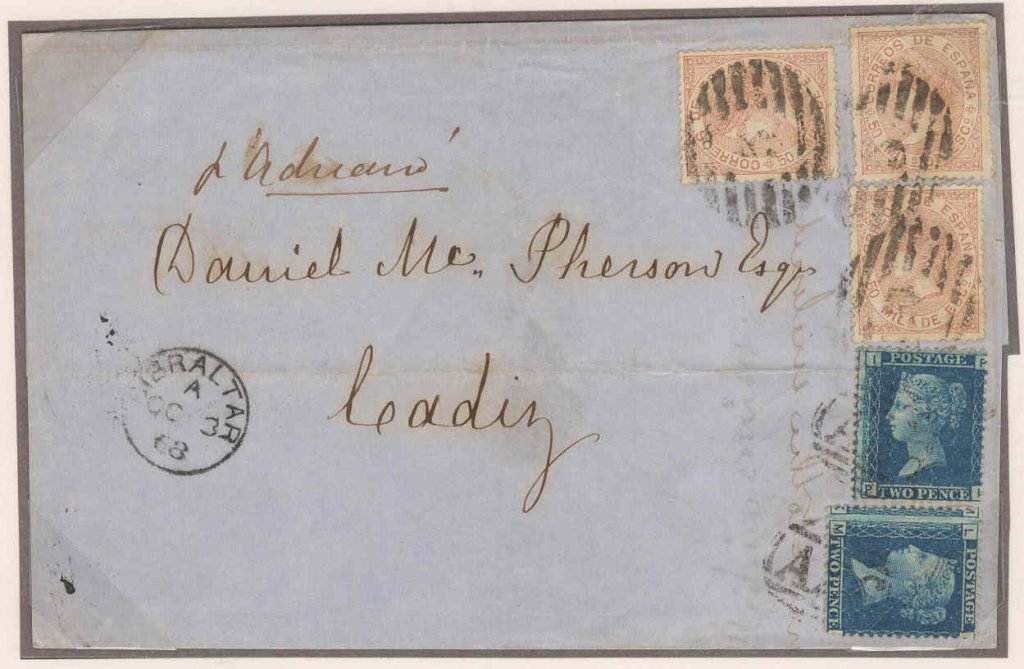 To Mcpherson, “p Adriano” combi cover pair GB 2d blue plate 9