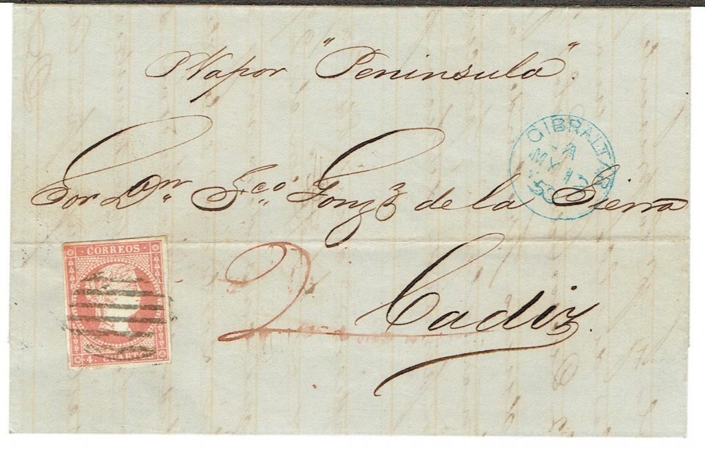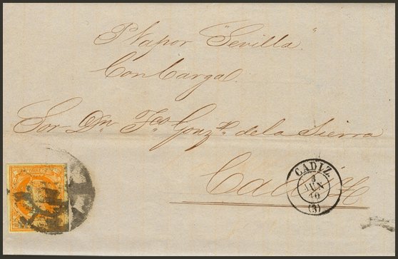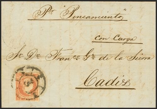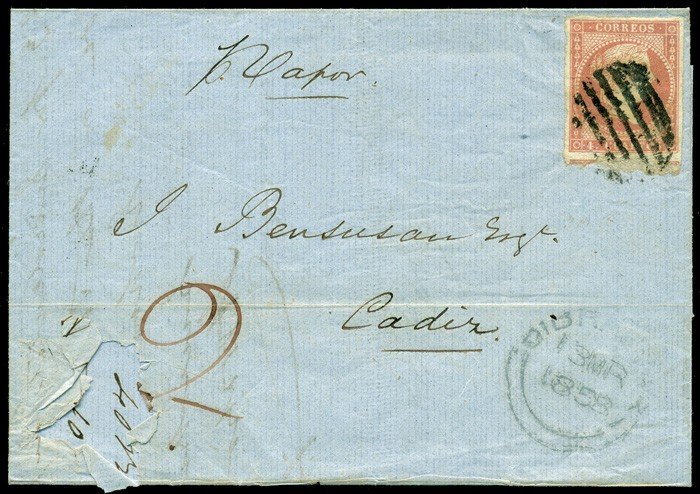 To Matia, stamp not cancelled per Vapor Llach sale AP 2013 LOT 972