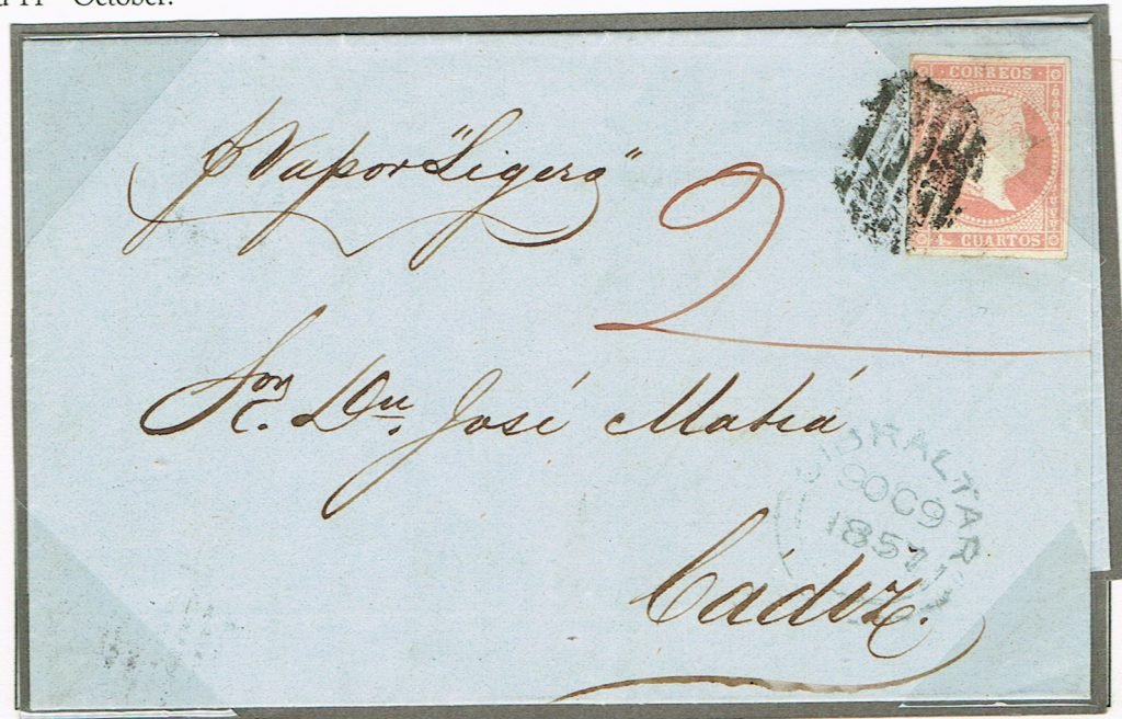 To Matia, per Ligero, ship letter by sea to Cadiz 2d manuscript, Gibraltar cds, ex Osborn