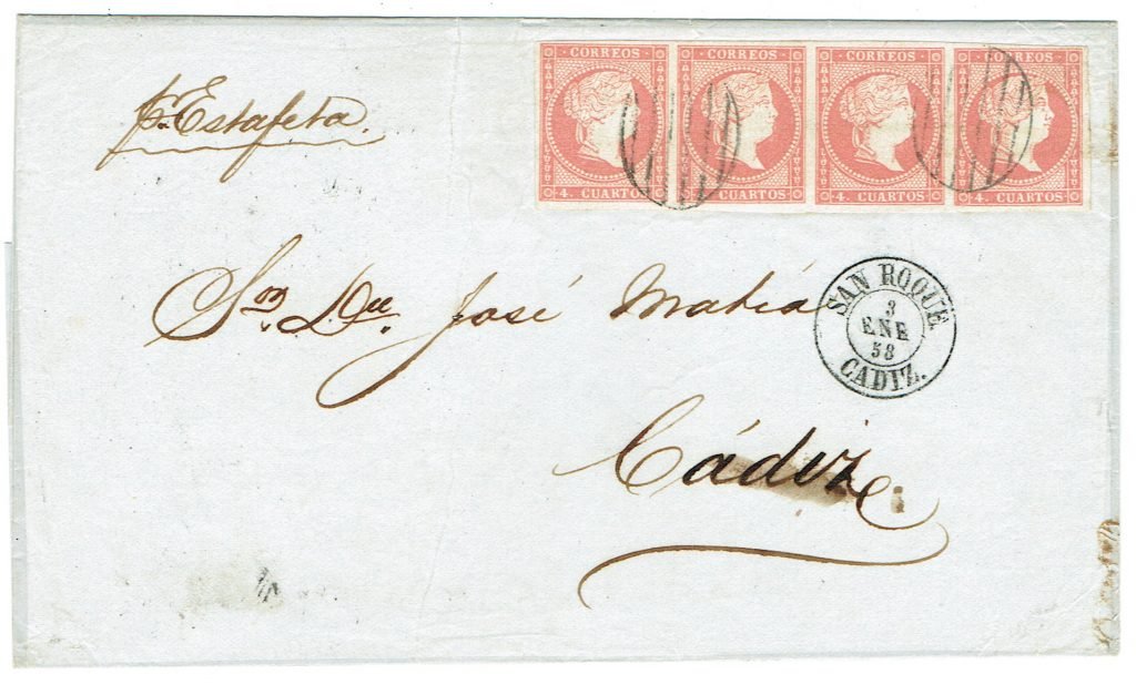 Subasta Sevilla catalogue july 20004 lot 3800, to McPherson per San Servando, no date or Gibraltar marks ,, only year given,