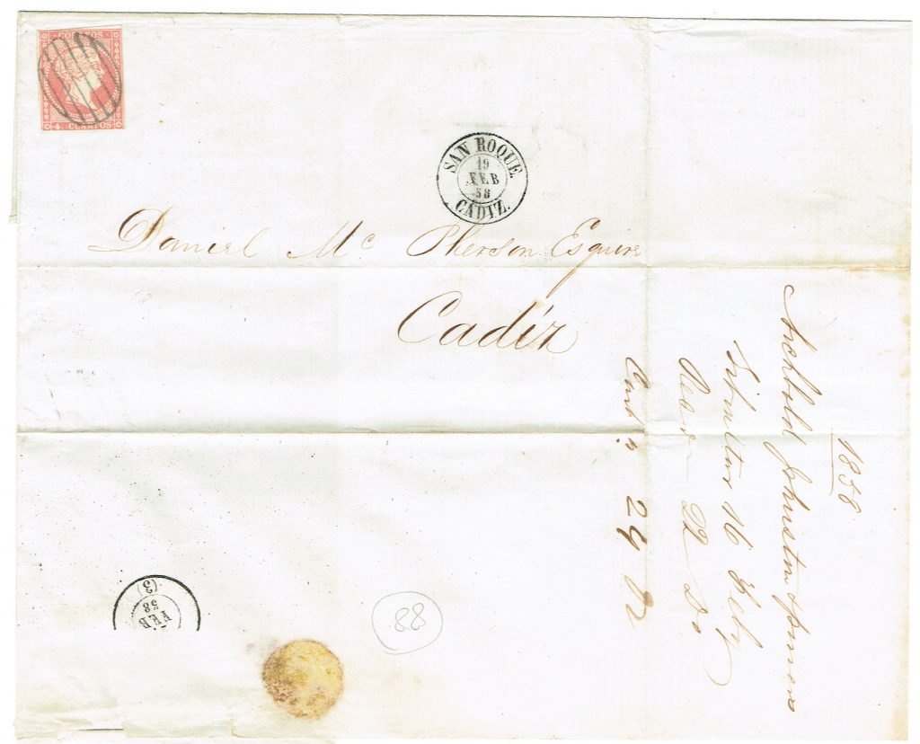 To McPherson, Por Steamer Pensamiento, no Gib marks no date, S&L 19 June lot 615