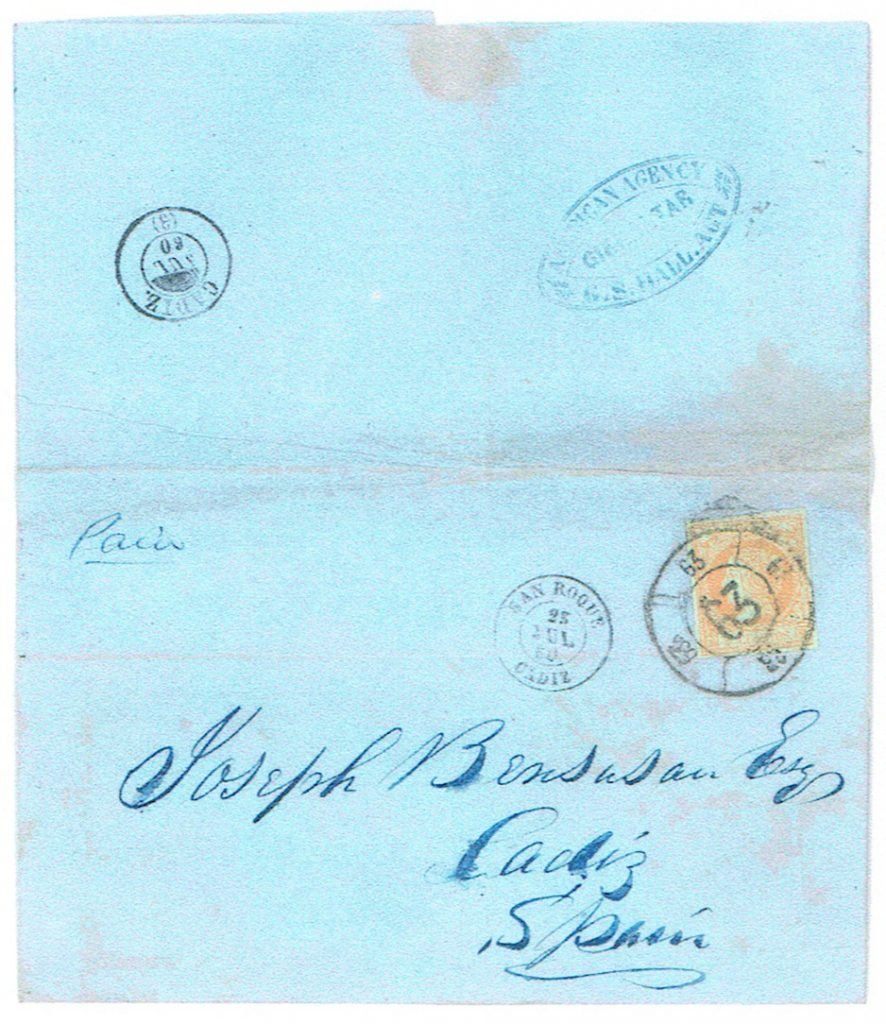 To Bensusan. Overland, Gibraltar cachet Ebay 18 Jun 04