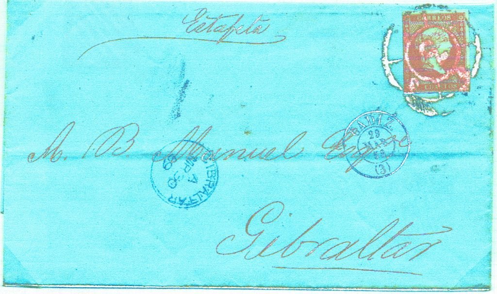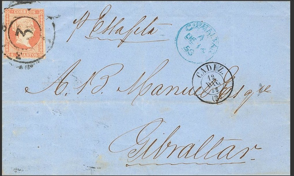 To Snr. Dn. Allejandro B Manuel, Blue Cordoba parrilla, black cds, Gibraltar cds