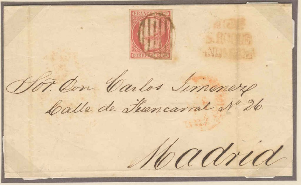 To Carlos Jimenez, green De Gib, Filatelia Barcelona sale lot 230 June 2011, stamp is 33A grey paper