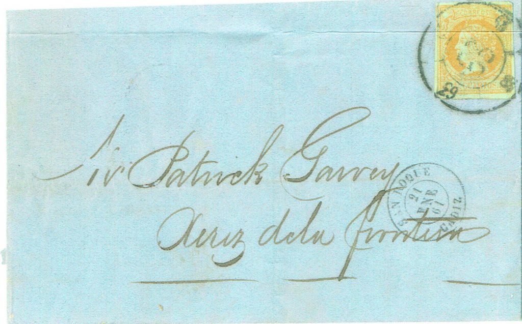 To Garvey from Rbrt Weir, overland, Ebay Nov 2003, also Gib Phil Auct Jan 05 lot 19