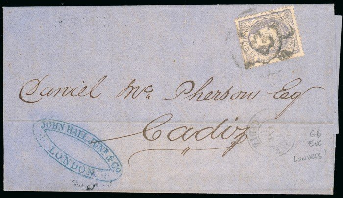 Subastas Sevilla cat July 2004 lot 3841, RC 63, S Roque type II, , to McPherson. John Hall Junr & Co London cachet I blue, only a front