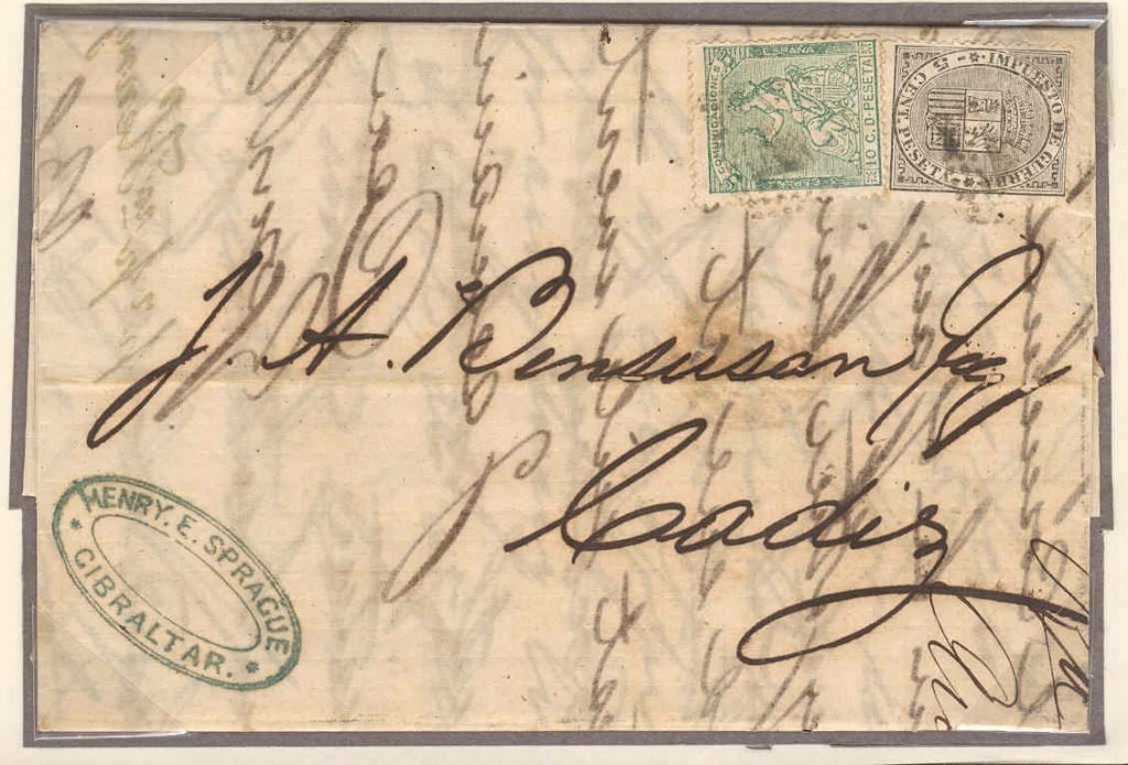 To Bensusan, Subastas Sevilla cat July 2004 lot 3845, rhombo de puntos cancel, Horatio Sprague cachet