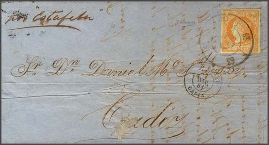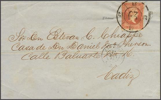 To Macpherson, S Roque cds, rueda cancel, day of date not clear, Iberphil sale 7/3/12