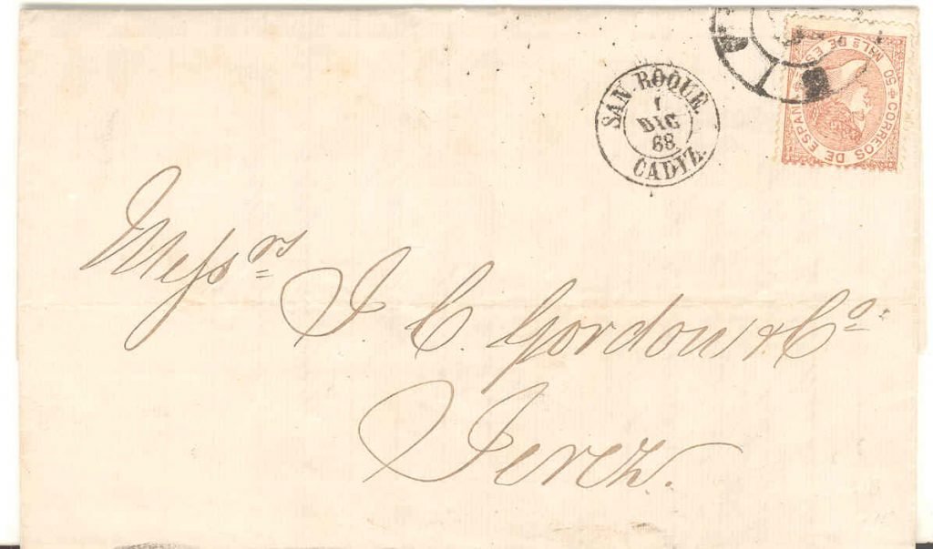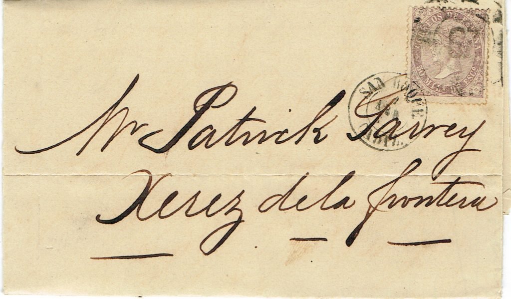 To Garvey, frm Rbrt Weir, Cadiz cds and rueda, date not clear no Gib marks may be 15 Oct