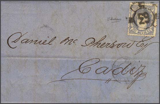 To Matia, P Adriano co Carga, stamp not cancelled, date not shown