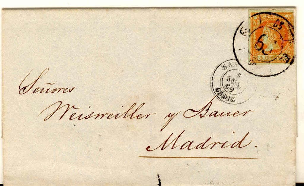 To Matia, stamp not cancelled per Vapor Llach sale AP 2013 LOT 972