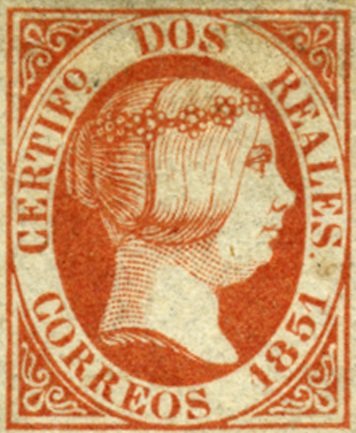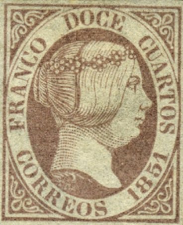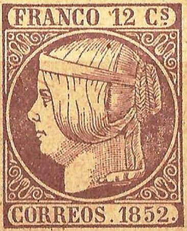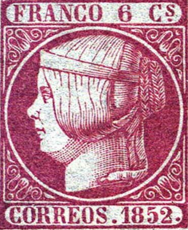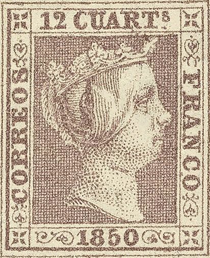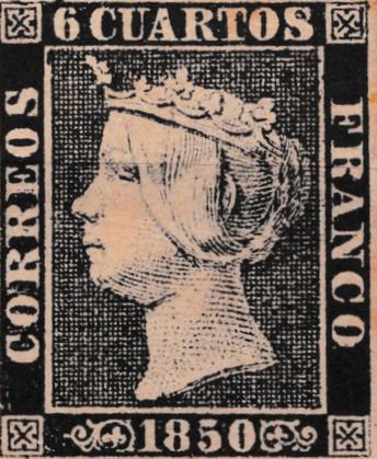 1850 Isabel II 6 c black Plate 1 – Gap between T & O of CUARTOS