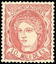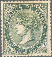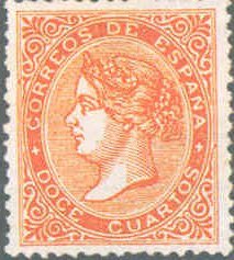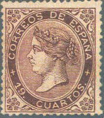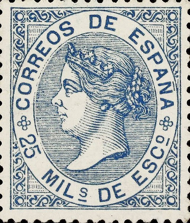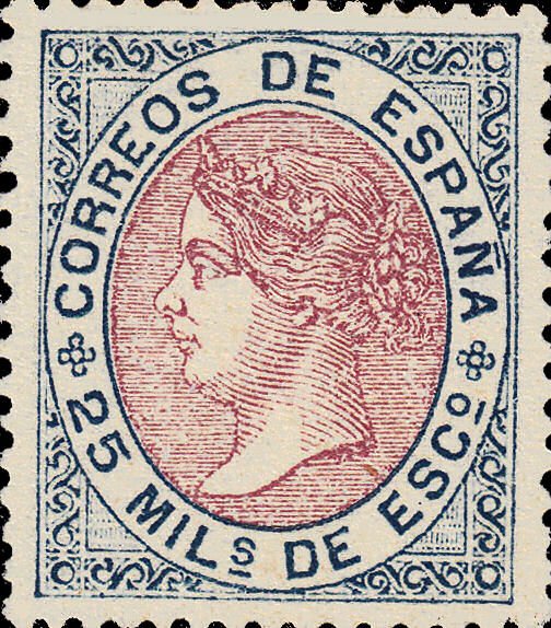 1867 Isabel II 25 m rose and blue
